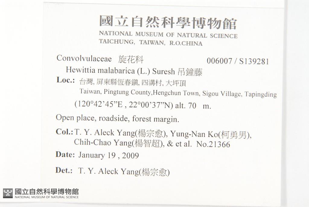 Collector:T. Y. Aleck Yang(楊宗愈), Yung-Nan Ko(柯勇男), Chih-Chao Yang(楊智超), & et al.