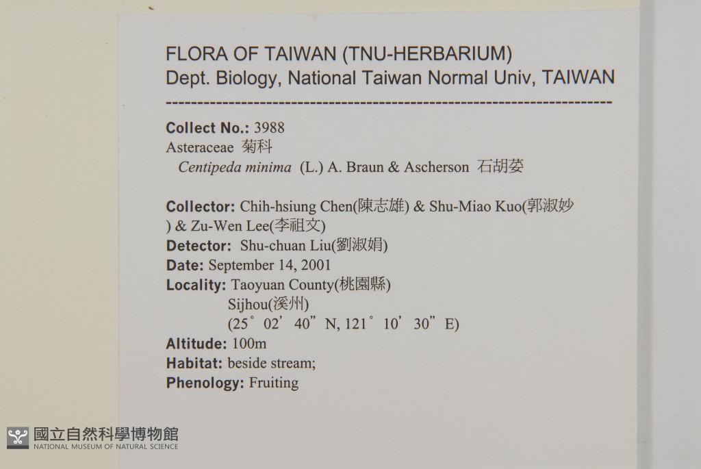 Collector:Chih-Hsiung Chen (陳志雄), Shu-Miao Kuo (郭淑妙), & Zu-Wen Lee (李祖文)
