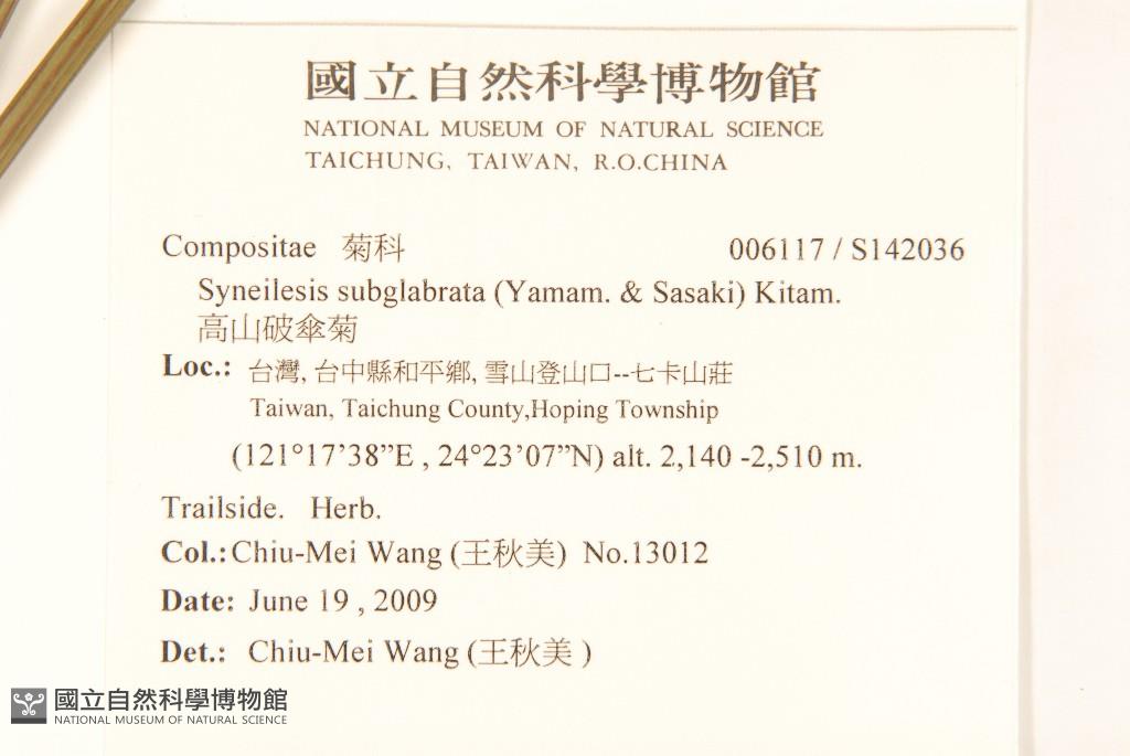 Scientific Name: Syneilesis subglabrata (Yamam. & Sasaki) Kitam.