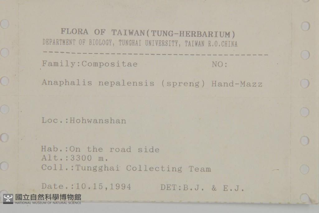 Collector:Tunghai collesting team
