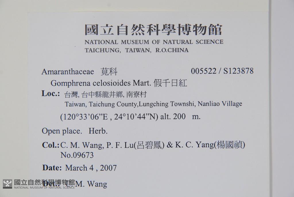 Collector:Chiu-Mei Wang (王秋美), Pi-Fong Lu (呂碧鳳), & Kuoh-Cheng Yang (楊國禎)