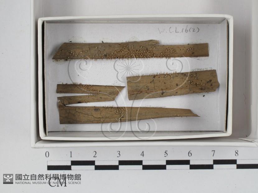 on leaves of Livistona chinensis.