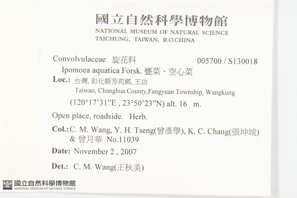 Collector:C. M. Wang, Y. H. Tseng(曾彥學), K. C. Chang(張坤城) & 曾月華