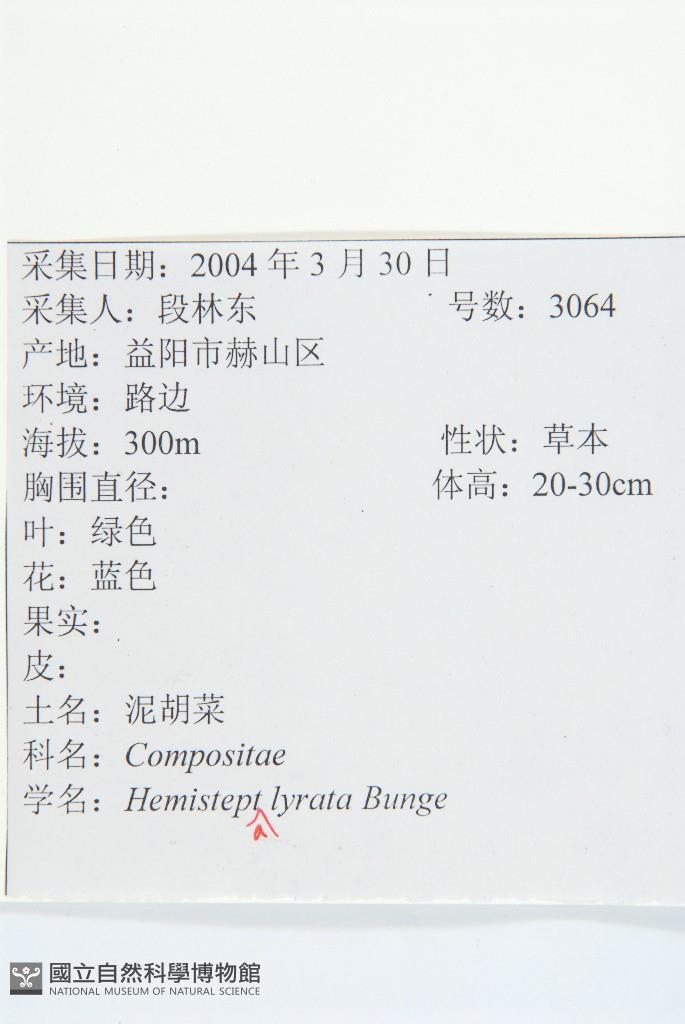 Scientific Name: Hemistepta lyrata (Bunge) Bunge