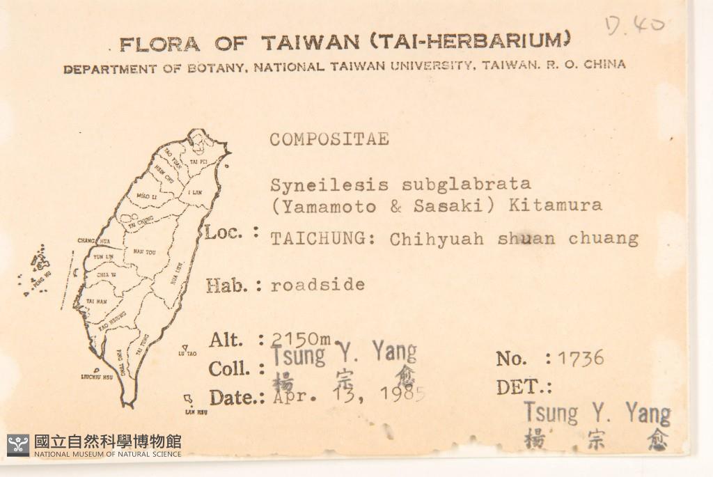 Scientific Name: Syneilesis subglabrata (Yamam. & Sasaki) Kitam.