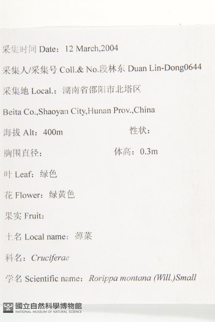 Scientific Name: Rorippa montana (Wall.) Small.