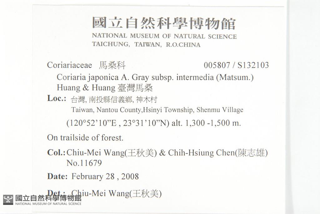 Collector:Chiu-Mei Wang (王秋美), & Chih-Hsiung Chen (陳志雄)