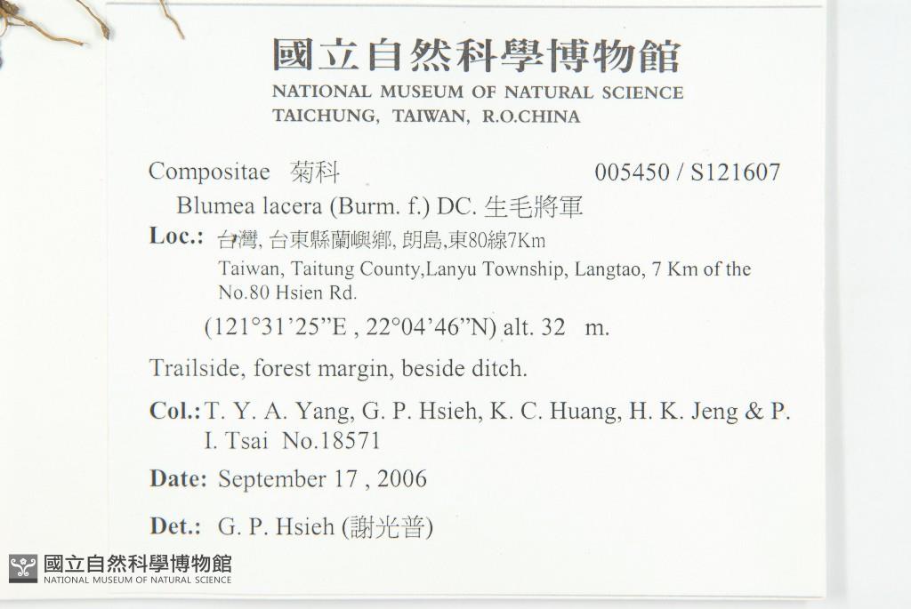 Collector:T. Y. A. Yang, G. P. Hsieh, K. C. Huang, H. K. Jeng & P. I. Tsai