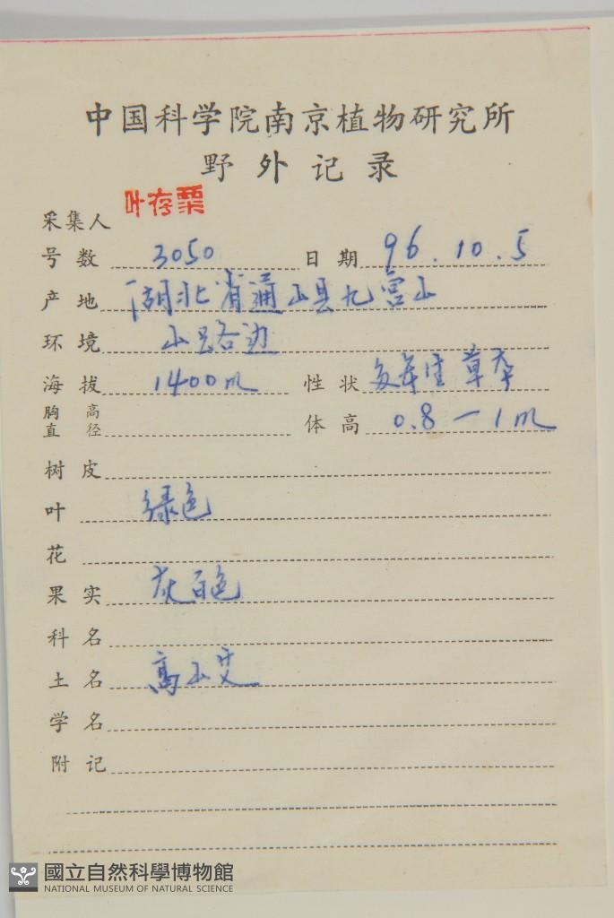 Collector:C. S. Ye(葉存粟)