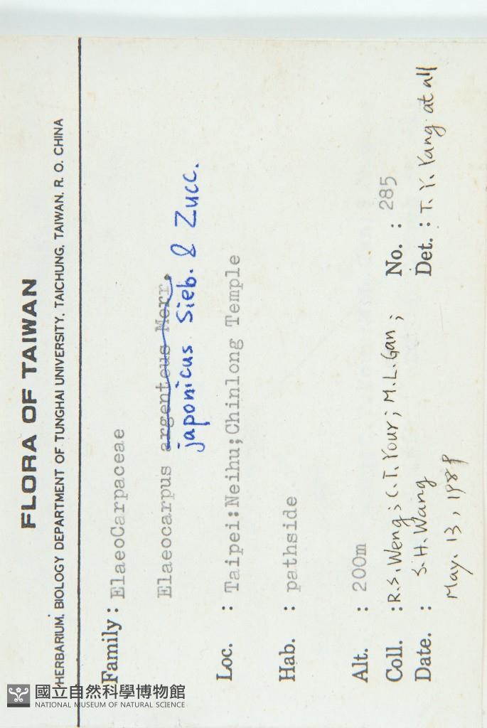 Collector:R. S. Weng, C. T. Your, M. L. Gan & S. H. Wang