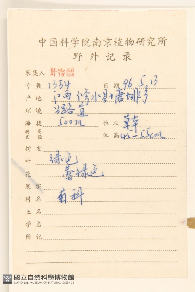 Collector:C. S. Ye(葉存粟)