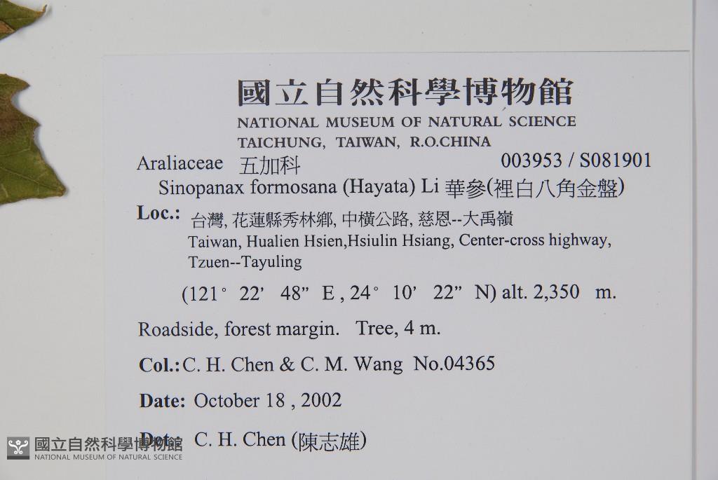Scientific Name: Sinopanax formosana (Hayata) Li