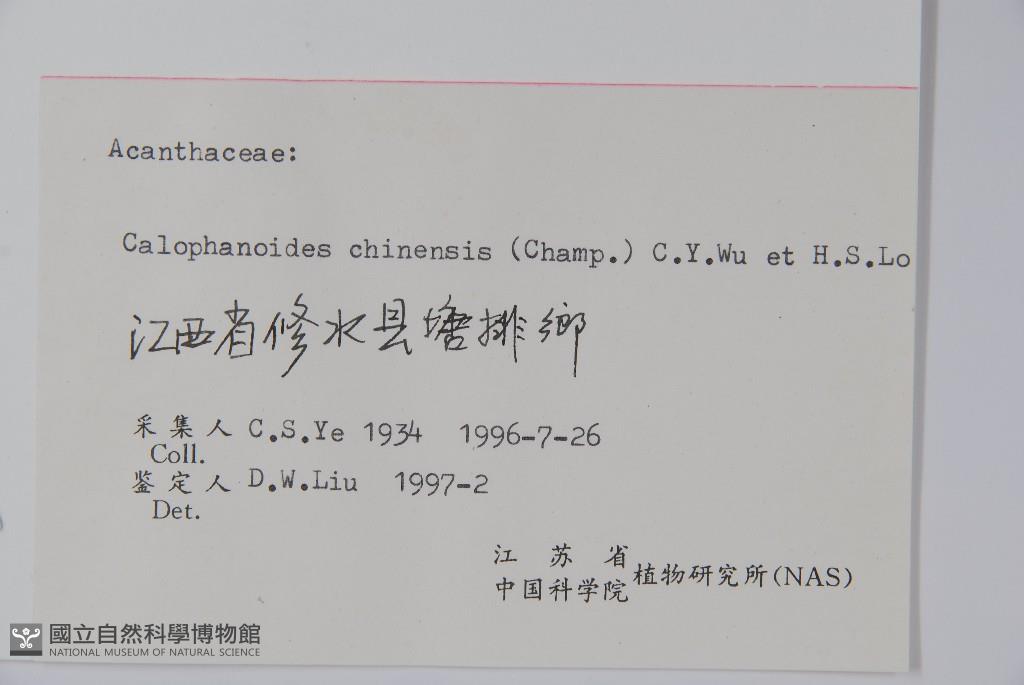 Scientific Name: Calophanoides chinensis (Champ.) C. Y. Wu & H. S. Lo