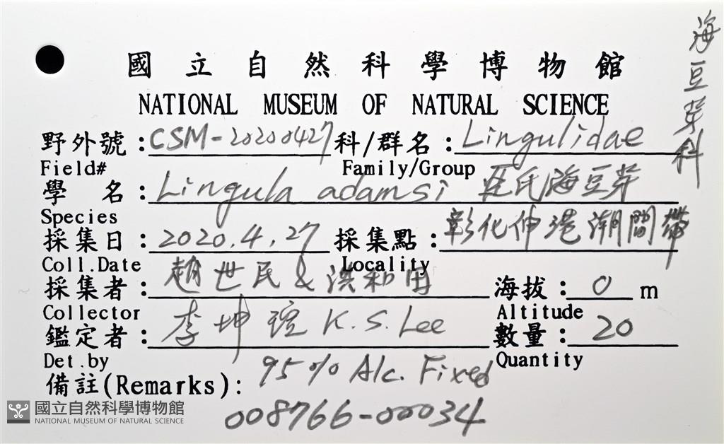 Scientific Name:Lingula adamsi Dall,1873