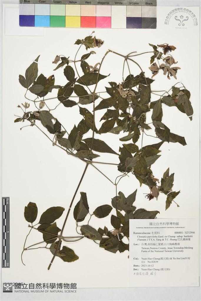 Scientific Name: Clematis parviloba Gard. ex Champ. subsp. bartlettii (Yamam.) T.Y.A. Yang & T.C. Huang