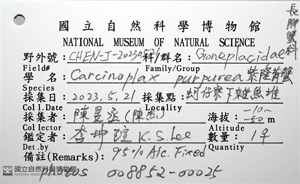 Scientific Name:Carcinoplax purpurea Rathbun,1914