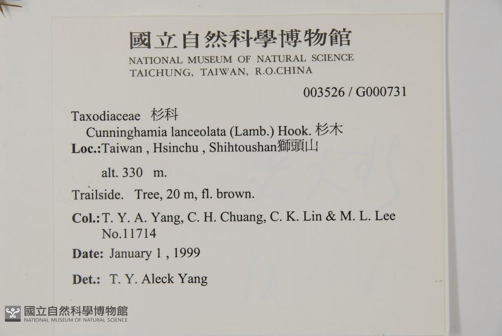 Collector:T. Y. A. Yang, C. H. Chuang, C. K. Lin & M. L. Lee