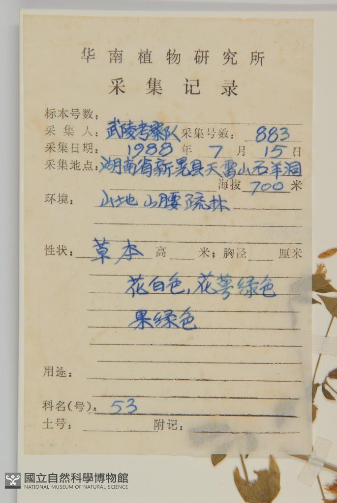 Collector's No.:武00883