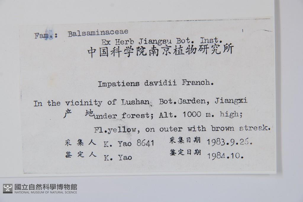 Scientific Name: Impatiens davidii Franch.