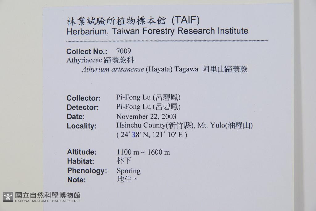 Scientific Name: Athyrium arisanense (Hayata) Tagawa