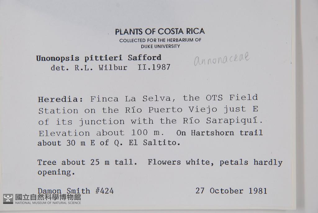 Scientific Name: Unonopsis pittieri Safford