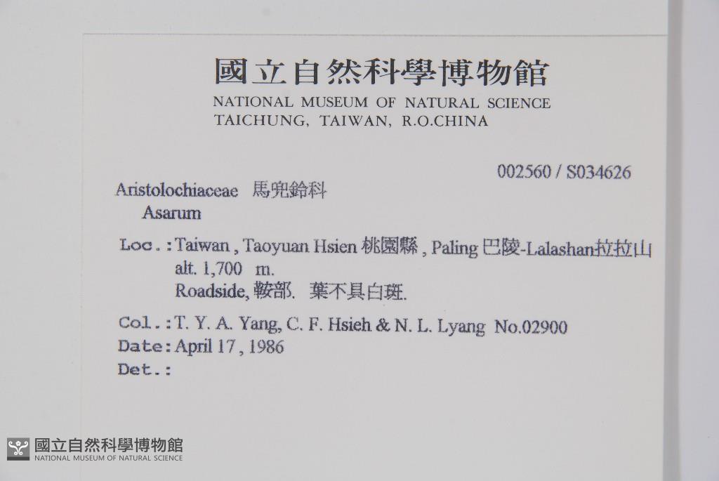 Collector:T. Y. A. Yang, C. F. Hsieh & N. L. Lyang