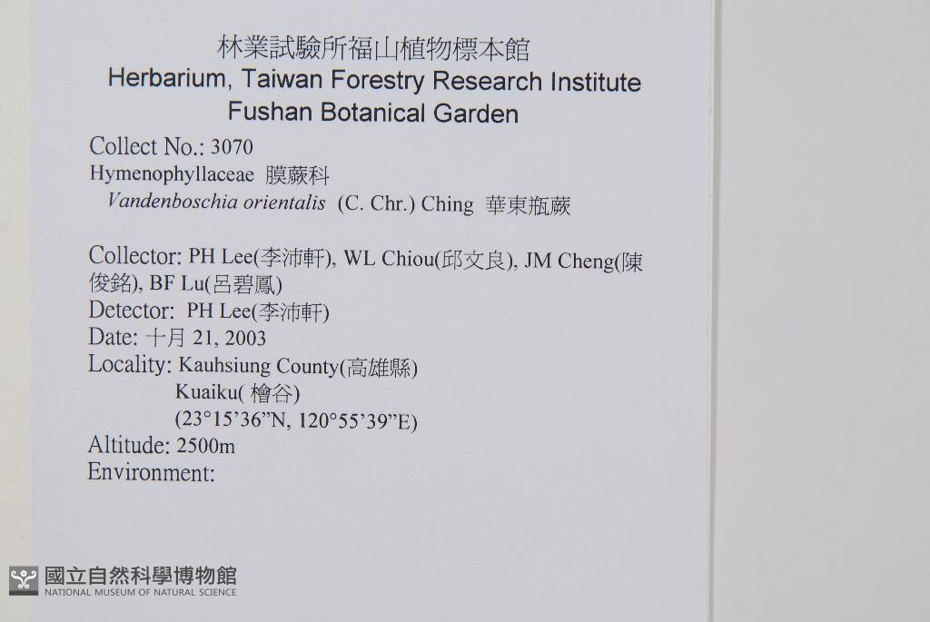 Collector:Pei-Hsuan Lee (李沛軒), WL Chiou (邱文良), Pi-Fong Lu (呂碧鳳) & al.
