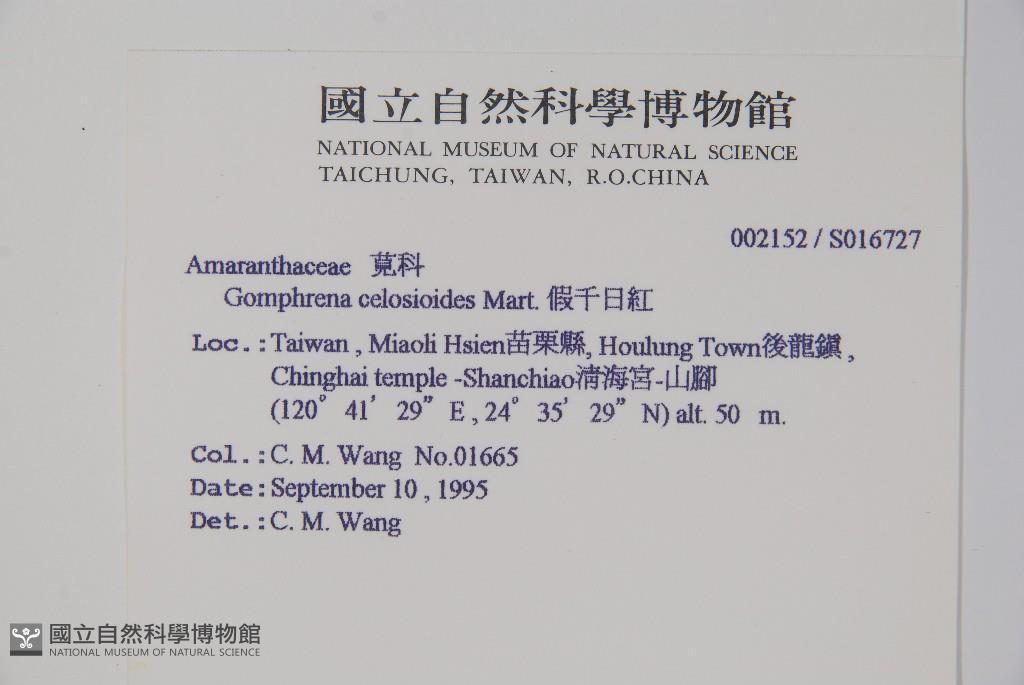 Scientific Name: Gomphrena celosioides Mart.
