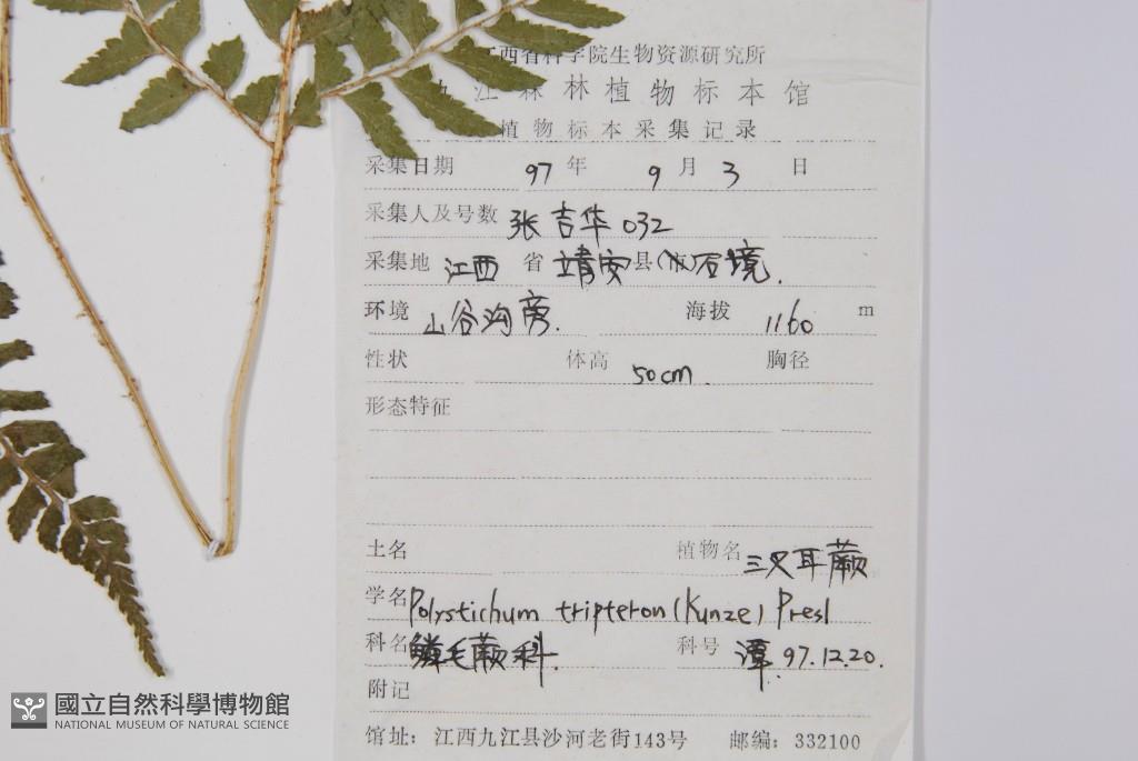 Scientific Name: Polystichum tripteron (Kze.) Presl
