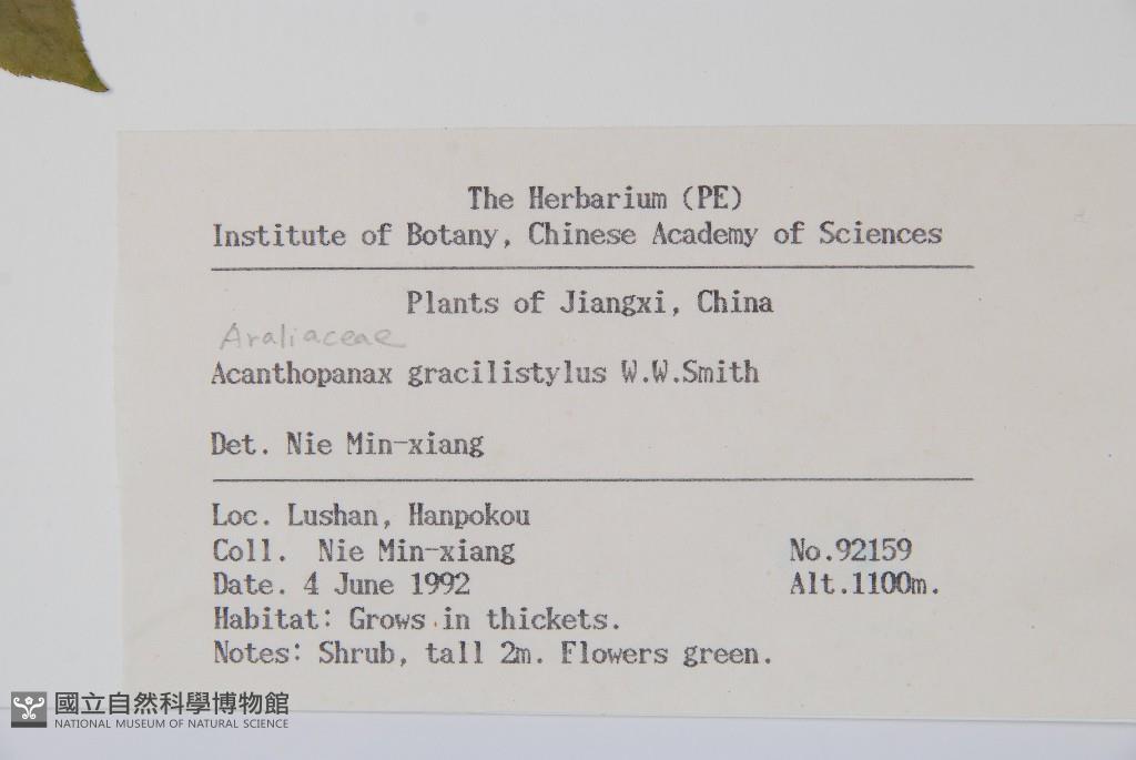 Scientific Name: Acanthopanax gracilistylus W. W. Smith