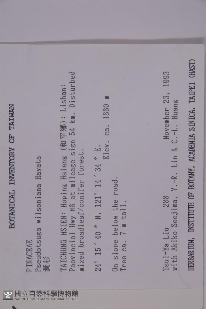 Collector:T. Y. Liu, Akiko Soejima, Y. R. Lin, C. L. Huang
