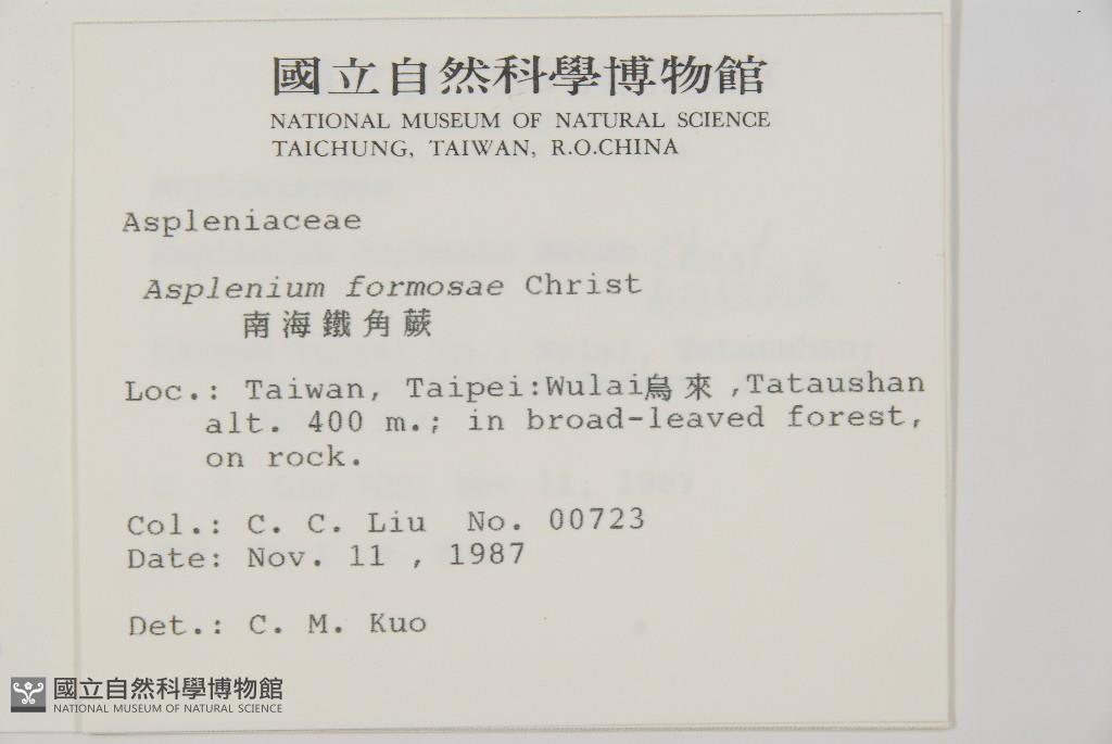 Scientific Name: Asplenium formosae Christ
