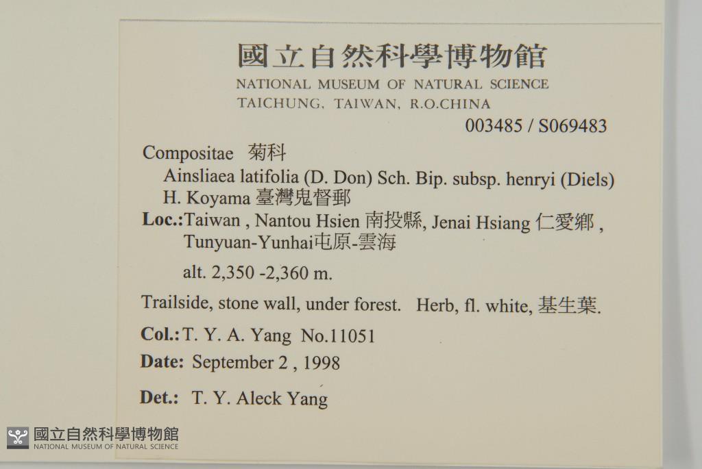 Scientific Name: Ainsliaea latifolia (D. Don) Sch. Bip. subsp. henryi (Diels) H. Koyama