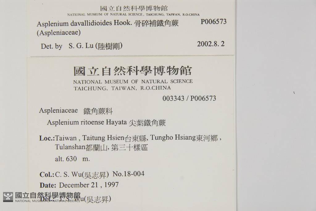 Scientific Name: Asplenium davallidioides Hook.