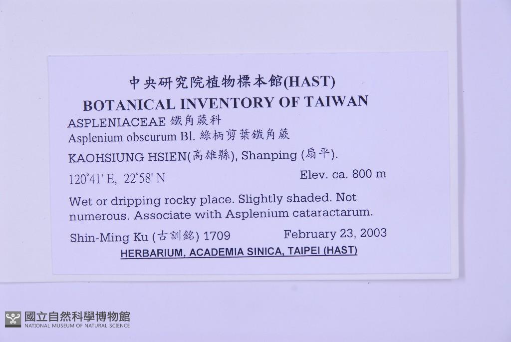 Scientific Name: Asplenium obscurum Blume