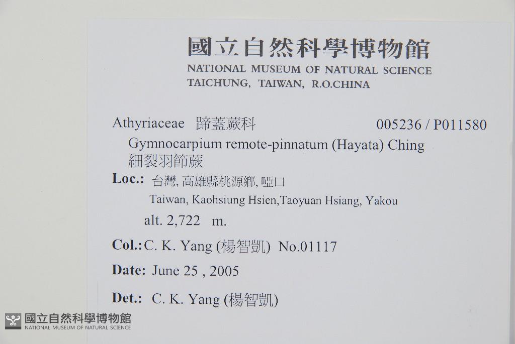 Scientific Name: Gymnocarpium remote-pinnatum (Hayata) Ching