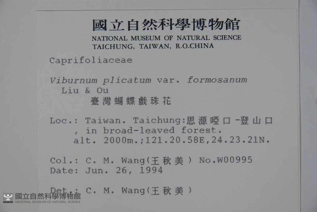 Scientific Name: Viburnum plicatum Thunb. var. formosanum Y. C. Liu & C. H. Ou