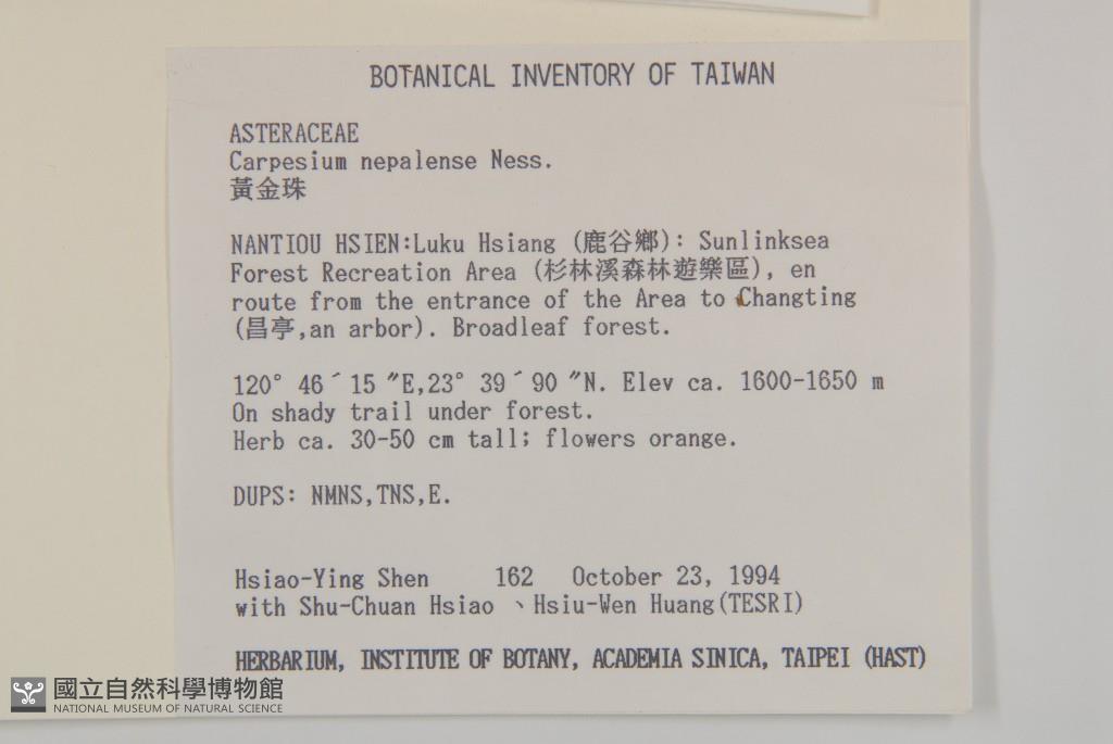 Collector:H. Y. Shen, S. C. Hsiao & H. W. Huang