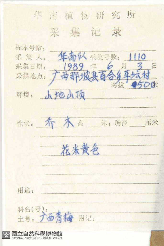 Collector's No.:華01110