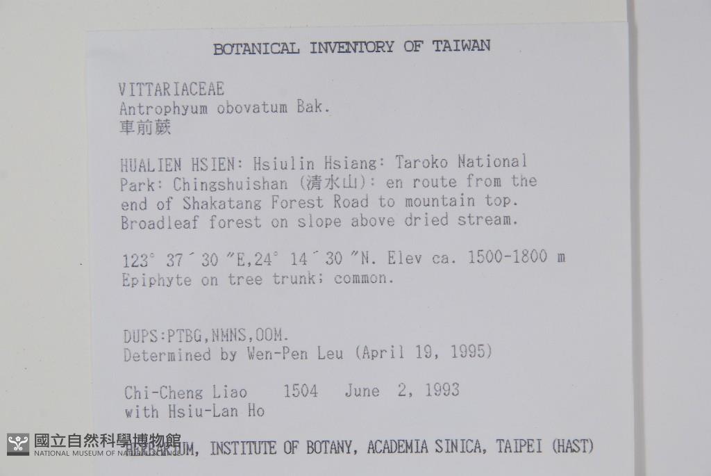 Collector:C. C. Liao & H. L. Ho