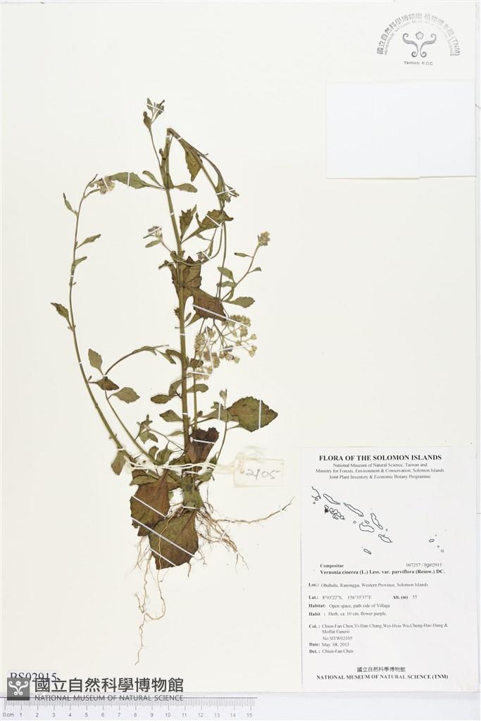Scientific Name: Vernonia cinerea (L.) Less. var. parviflora (Reinw.) DC.