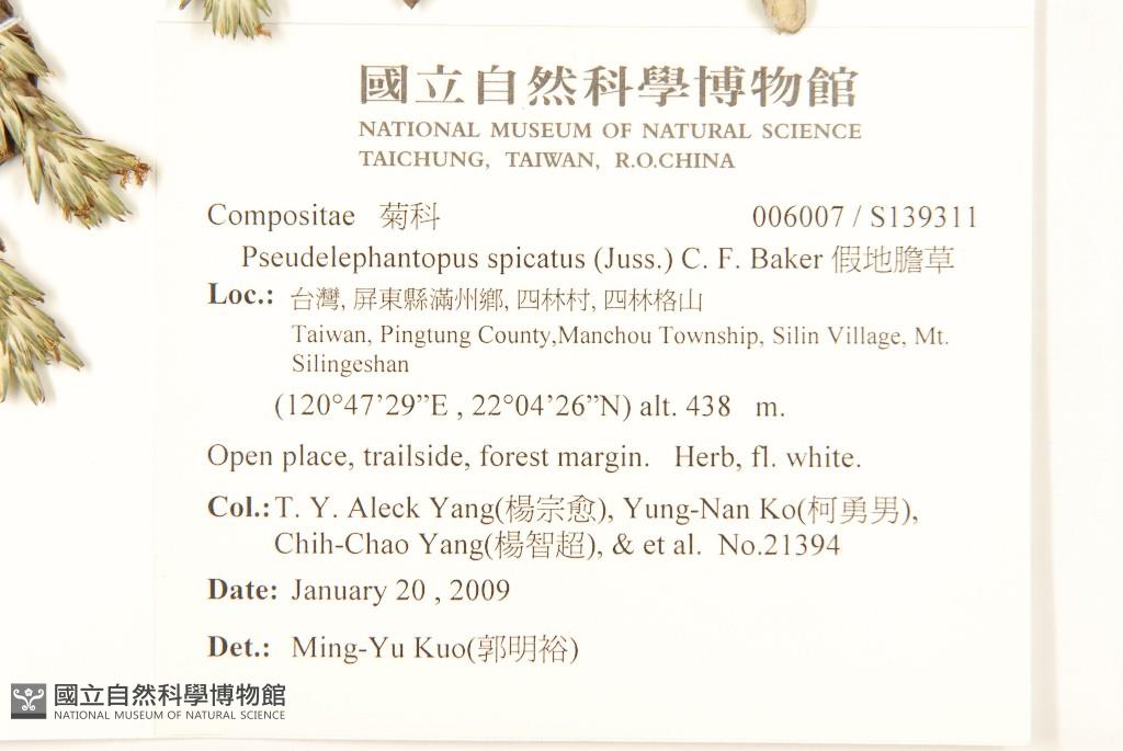 Collector:T. Y. Aleck Yang(楊宗愈), Yung-Nan Ko(柯勇男), Chih-Chao Yang(楊智超), & et al.