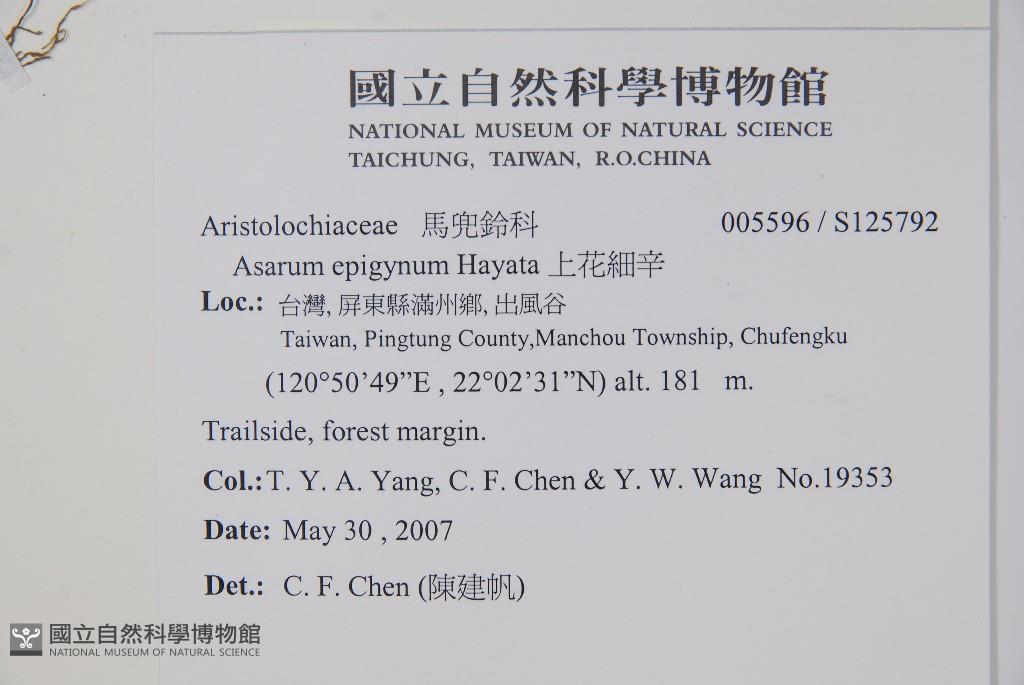 Collector:T. Y. A. Yang, C. F. Chen & Y. W. Wang