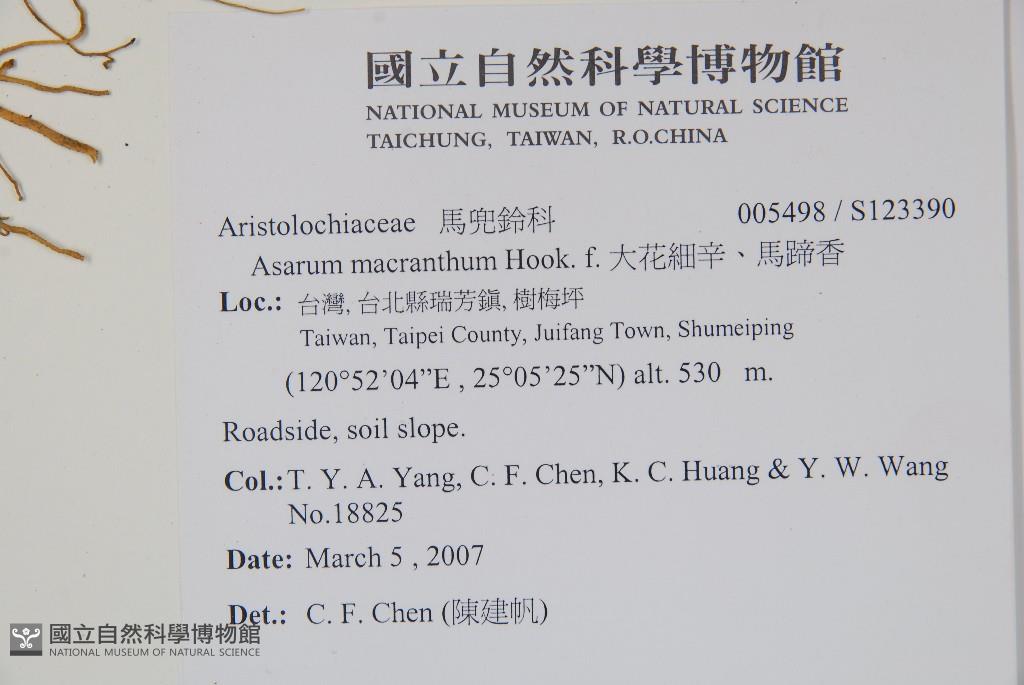 Collector:T. Y. A. Yang, C. F. Chen, K. C. Huang & Y. W. Wang