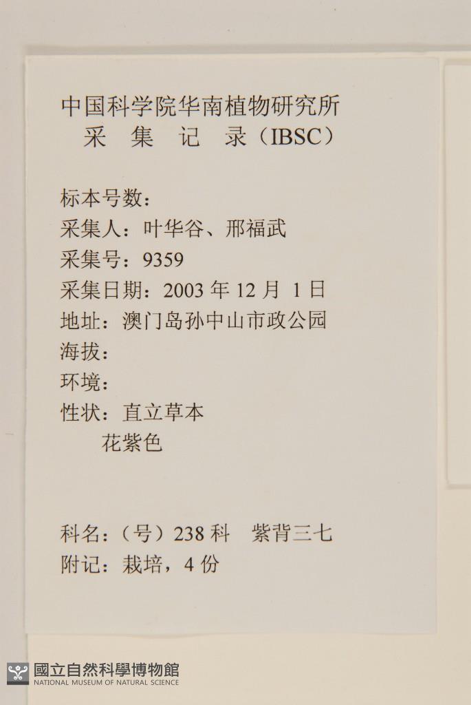 Collector:葉華谷、邢福武