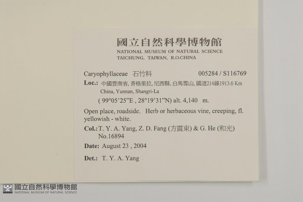 Collector:T. Y. A. Yang, Z. D. Fang (方震東) & G. He (和光)