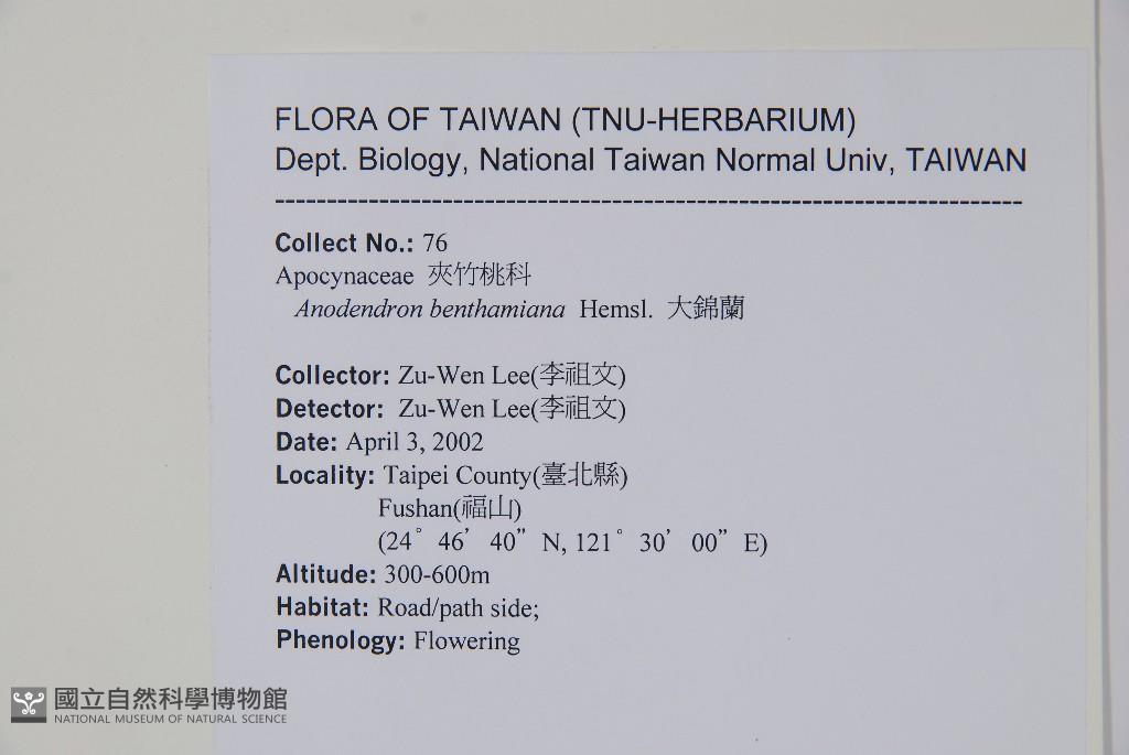 Scientific Name: Anodendron benthamiana Hemsl.