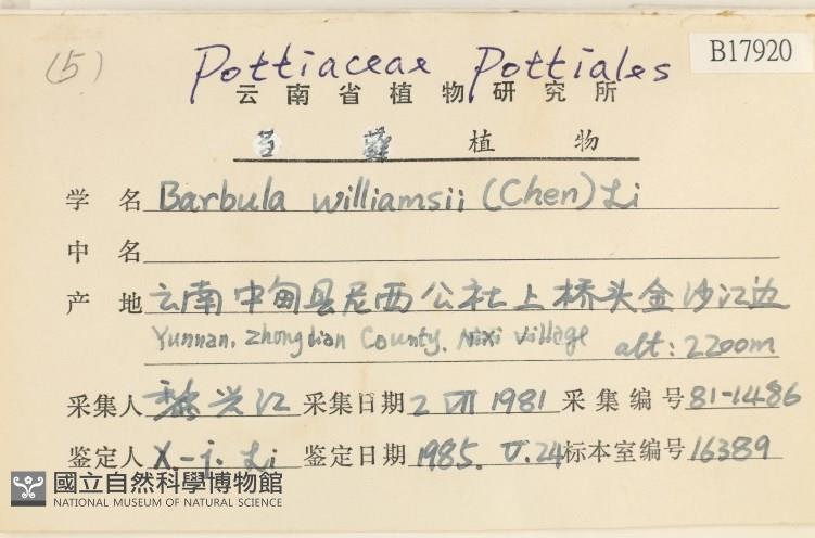 Scientific Name:Barbula williamsii