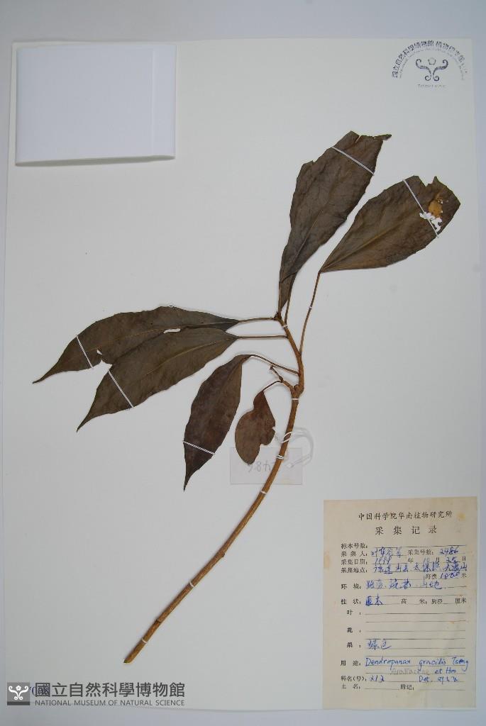 Scientific Name: Dendropanax gracilis C. J. Tseng & Hoo