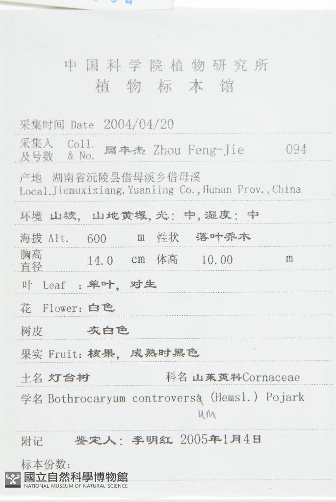 Scientific Name: Bothrocaryum controversum (Hemsl.) Pojork.